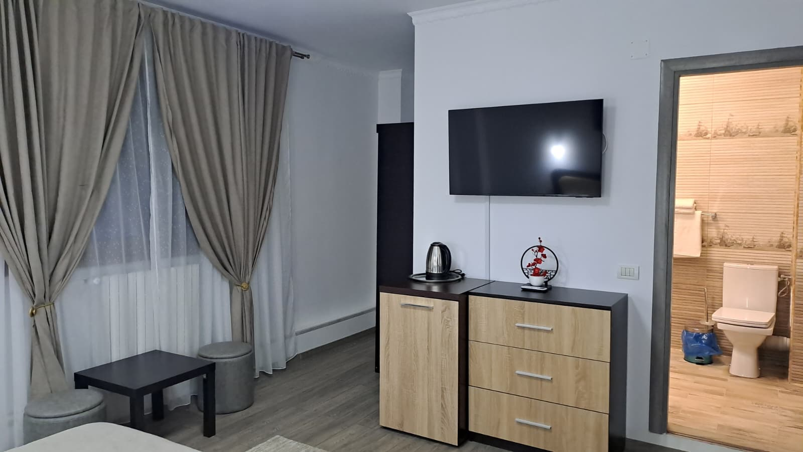 Raport calitate–preț foarte corect. Am apreciat în special spațiul generos și faptul că totul a fost exact ca în poze. Wi-Fi bun, Smart TV, frigider în cameră. Personalul a fost prompt și discret.
